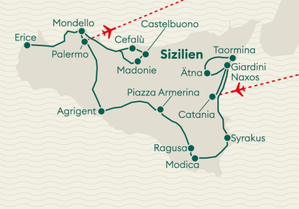 Direktflug ab Zürich mit Edelweiss nach Catania. Rückflug mit SWISS ab Palermo nach Zürich.